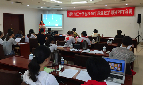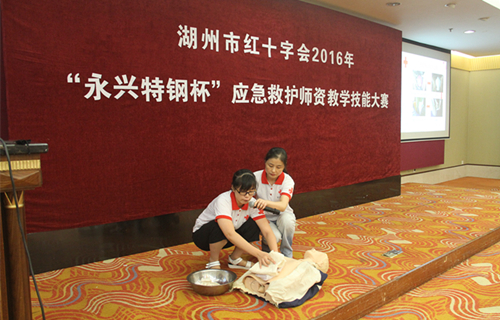 9月6日,湖州市红十字会2016年“永兴特钢杯”应急救护师资教学技能大赛落下帷幕,来自6支市、县(区)红十字会代表队近30名选手参加了包括主题演讲、优秀课件评比和优秀师资评比等三个系列单项比赛,此次技能大比武分两个阶段进行,其中,应急救护优秀课件评比已于8月26日举行。