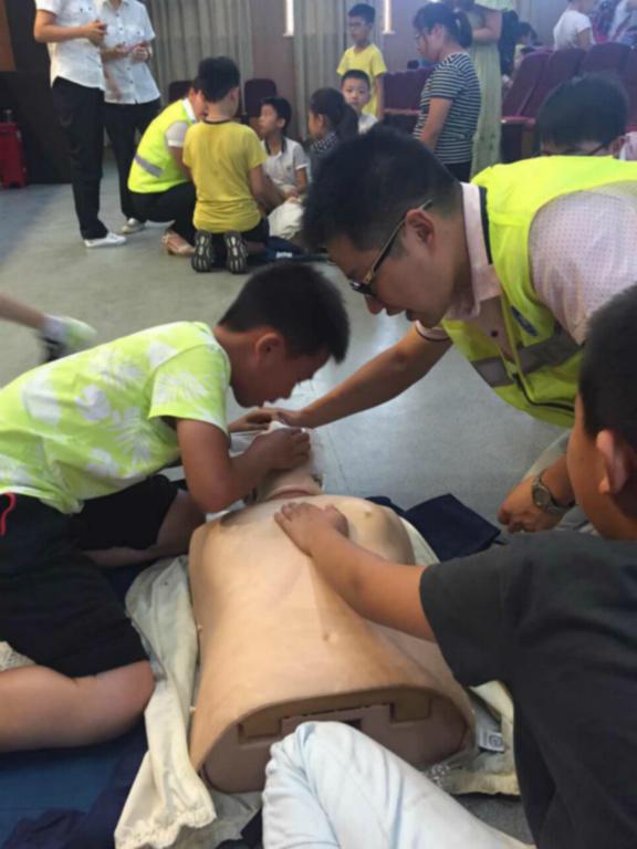 来自市实验学校五年级的300多位学生参加这项活动。活动现场,救护培训老师为学生们详细讲解了心肺复苏的具体步骤、方法和注意事项,生动形象的演示受到了大家热烈欢迎,现场气氛活跃,同学们积极回答问题,踊跃参与操作实践。