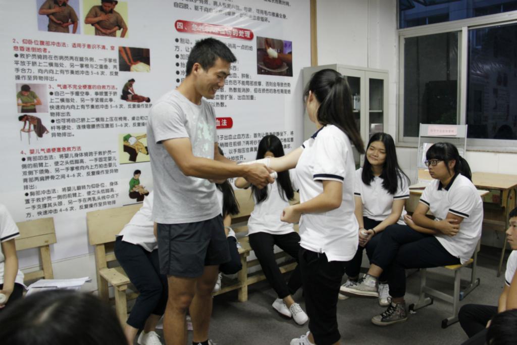 9月9日上午,堰头小学开展了逃生演练及急救包扎训练。3名刚经过救护师资培训的教师,对每个班班主任进行了救护知识培训,逃生演练结束后,每个班的班主任分别将急救知识普及给本班学生,真正达到了学校人人学急救的目的。下午,丽州高级中学同样开展了全校学生逃生演练、新生急救知识普及培训,同时,逃生演练结束后,在操场集合点学校挑选两个班级分别进行了心肺复苏和创伤包扎集体操作演示。长恬小学则以《再给生命一次机会》的讲座来纪念世界急救日活动,为全校师生讲述了红十字急救的意义、以及溺水、火灾、校园踩踏事件的预防及演练。活动将急救知识理论联系实际植根于每位学生的心中,不仅让学生学会了如何从容面对险情,而且让他们更加明白了珍惜生命的重要性。