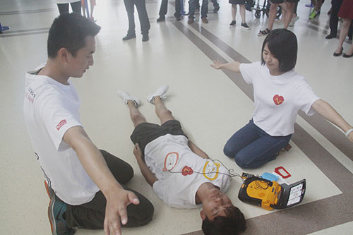 此次配置的AED是特别设计给一般民众使用的,非常简便,仅需开启电源、将电极片按图示贴至患者身上,AED便会自动分析心律,自动判定患者是否需要电击,现场AED使用人员只要依照机器语言提示操作,配合实施有效CPR,直到专业医护人员到达,为专业抢救赢得宝贵时间。为使相关人员更好地熟悉使用AED,18号市红会组织了AED使用专题培训,16个AED设置点工作人员、各地红十字会救护培训师等40余人参加培训。为确保AED安全、便捷使用,还专门定制了立柜式外箱,箱体上用图示加文字的形式,向公众介绍AED的使用方法。