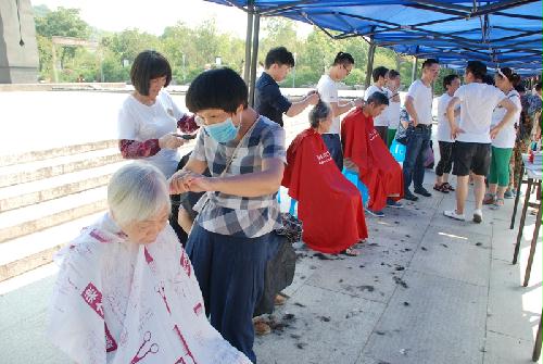在浙江慈善义工协会的理发、裁剪服务区,市民们陆续领号子,5名理发师和2名裁剪师忙得不亦乐乎。“我们已经为市民免费理发、免费裁剪20多个了,现在排队的人还不少呢!”志愿者一边擦汗,一边微笑着说。
