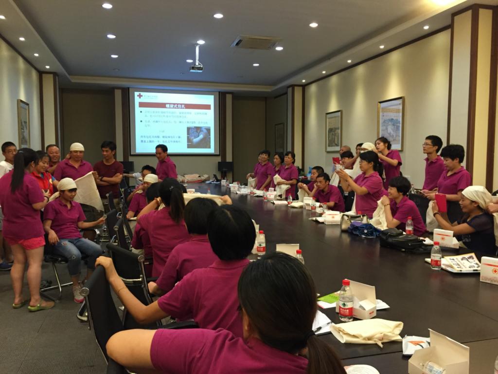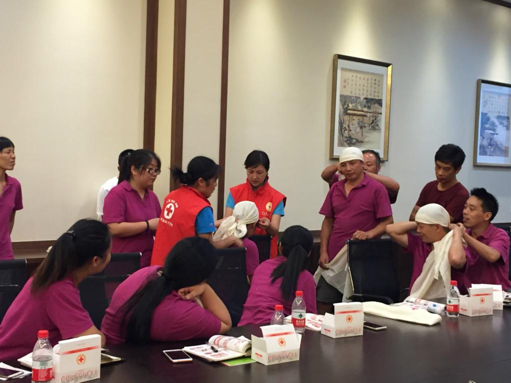 红十字救护培训老师给大家详细讲解了主要包括应急救护的基本程序、心肺复苏术、创伤救护的基本技能、常见急症与灾害的紧急救护等急救知识与技能。大家认真听讲,积极练习,有36名参训人员顺利通过理论、心肺复苏和创伤包扎考核,取得了红十字救护员证。