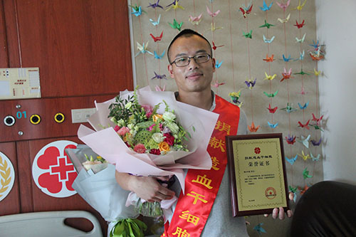 下午13时15分,随着血液分离机发出的“滴、滴”声,骆少俊终于完成捐献。173毫升从他体内采集出来的造血干细胞混悬液在第一时间被志愿者送往江苏,为一名年轻的血液病患者送去生的希望。