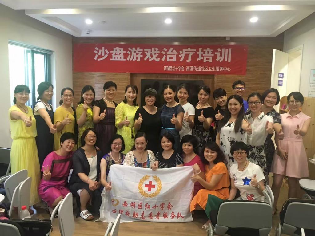 为提高西湖区红十字会心理关爱服务队专业技能,拓宽服务水平,更好的服务保障G20,2016年6月23日,西湖区红十字会特邀请来自温州的国家A级沙盘游戏治疗师、督导师,国际心理分析学会暨国际沙盘游戏学会中国发展组织温州小组负责人厉云花老师,为队员们教授专业沙盘治疗培训课程。 沙盘游戏治疗是目前国际上很流行的心理治疗方法。在学校和幼儿园,它被广泛应用于儿童的心理教育与心理治疗;在大学和成年人的心理诊所,它也深受欢迎。通过唤起童心,人们找到了回归心灵的途径,进而身心失调、社会适应不良、人格发展障碍等问题在沙盘中得以化解。