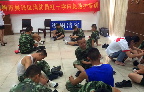 为增强消防官兵在救援行动中的应急救护能力,全力做好护航G20、服务G20峰会工作,近期,湖州市红十字会联合市公安消防支队,对全市173名一线消防官兵开展应急救护技能培训。培训按照“统一教学大纲、统一教材课件、统一质量标准、统一考核发证”的“四统一”要求,采取市、县(区)联动形式进行开展,在讲授红十字运动基本知识、救护概论、心肺复苏术、AED使用、创伤救护基本技能、气道异物梗阻等常规知识外,还特别针对消防行业的特点,重点讲解了突发事件、意外伤害的现场避险逃生与自救互救技能。通过理论和实操考核的消防官兵获得了《浙江省红十字会救护员证》。