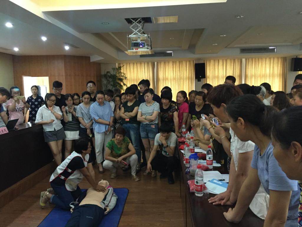 为充分弘扬志愿服务精神,发挥红十字会普及救护知识的作用,积极参与服务G20峰会,近日,拱墅区拱宸桥街道红十字会邀请浙江老年关怀医院副院长陈虹等红十字救护师资,在街道6楼举办了一场“百人应急救护知识培训”活动,街道和社区工作人员、辖区内群众共百余人参加了培训。
