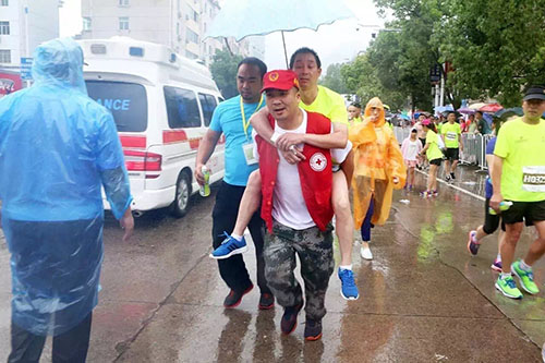 三是落实赛事应急救护任务。根据赛事的需要,将109名应急救护志愿者分别安排在半程马拉松赛道沿线和收容车上,与医务人员差开排位,全程参与应急救护保障服务工作。比赛当天,109名红十字志愿者提前2小时到达赛道指定位置。在6个多小时的服务中,赛事志愿者在风雨中坚守岗位、全心投入、积极应对,并对比赛中出现不适症状的运动员进行跟随陪护,确保了赛事顺利进行,圆满完成了医疗保障任务,赢得了参赛运动员和观众的一致称赞,身穿红马甲的红十字志愿者成为马拉松赛赛道上一道靓丽的风景。 (金美仙)