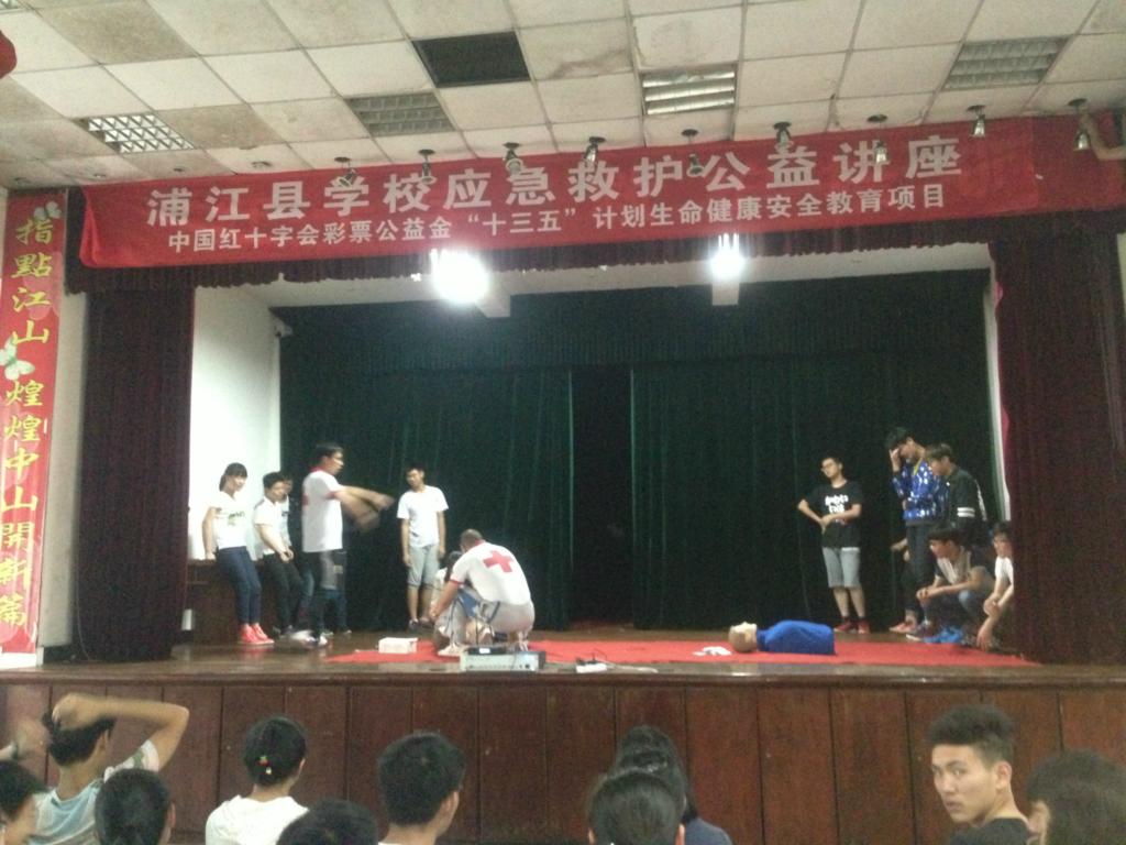 本次讲座得到浦江中山中学的大力协助。为不与该校其他教学安排冲突,浦江县红十字会三位省级师资更是奉献中午宝贵的休息时间,认真教学。