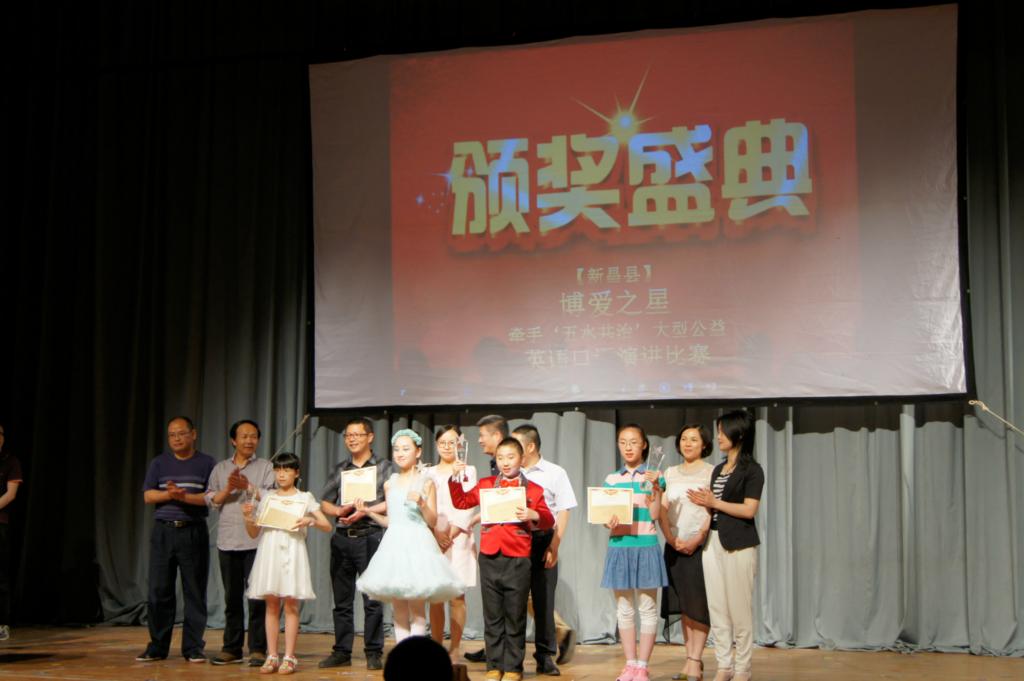15日下午14点,新昌县“博爱之星牵手‘五水共治’”大型公益英语口语演讲比赛颁奖典礼在县文化中心隆重举行。