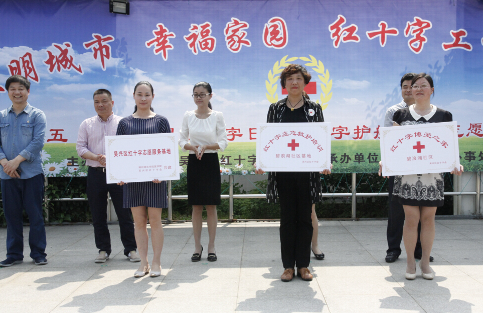 5月6日下午,湖州市吴兴区红十字会在朝阳街道碧浪湖社区举办纪念第69个世界红十字日暨红十字护航G20志愿服务启动仪式,以此为契机,大力弘扬“人道、博爱、奉献”的红十字精神,全面推动红十字志愿者护航G20峰会。湖州市红十字会党组书记、常务副会长吴康丽、吴兴区人民政府副区长、吴兴区红十字会会长朱建豪、吴兴区红十字会常务副会长邵树乔等领导出席了启动仪式。参加启动仪式的还有来自城区5个街道及吴兴区应急救护培训讲师团、吴兴区医疗系统红十字志愿服务队的近200名志愿者们。
