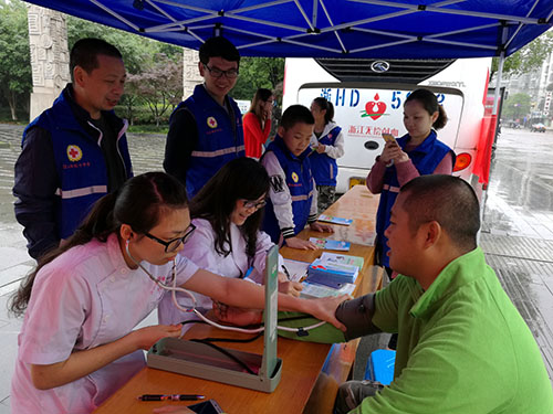 5月8日,市红十字会在市区文化广场组织开展了一次以“助力G20 江山在行动”为主题的红十字博爱周志愿服务活动。活动不仅安排了专业医务人员为市民进行义务诊疗和健康咨询,安排了无偿献血车,接受志愿者的无偿献血,还进行了造血干细胞、器官捐献等宣传资料的发放工作。