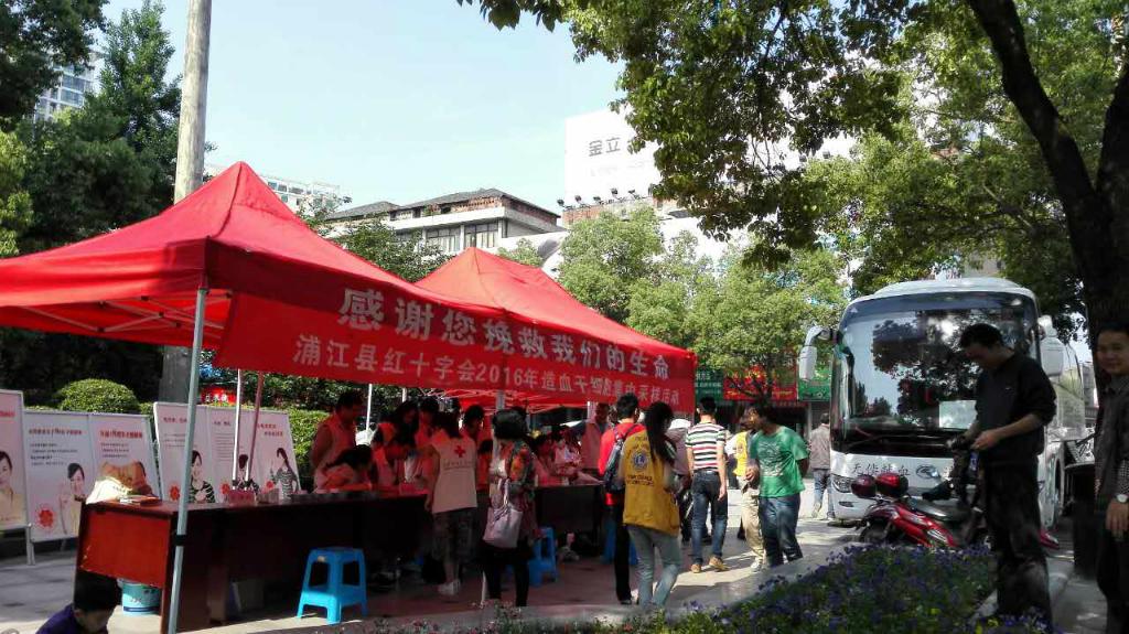 5月1日,在文化广场献血车旁开展了无偿献血和造血干细胞捐献集中采样活动,由浦江县红十字会和县献血办在文化广场联合举办十字生命关爱志愿队和浦江狮子会仙华分队的志愿者协办。