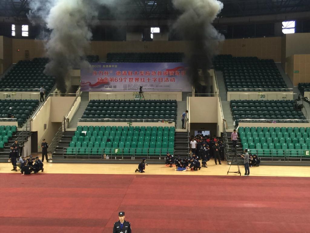今年5月8日是第69个世界红十字日,为进一步弘扬“人道博爱奉献”的红十字会精神,按照县委《“服务G20展示新形象”行动方案》的要求,德清县红十字会、县体育局、县公安局、县安监局联合举办本次大型应急救援演练暨纪念第69个世界红十字日活动,活动中模拟着火、踩踏、高空坠落等一系列突发事件进行了应急救援演练,县红十字应急救援队展示了心肺复苏、创伤救护等应急救护知识,以增强各相关部门应对大型群众活动突发事件的综合指挥水平,检验县红十字组织快速应急救援能力,提高广大群众的安全意识和自救知识,为护航G20提供坚实的基础。