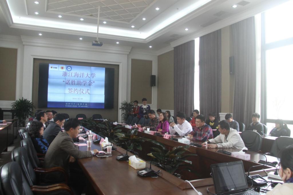 4月9日,市红十字会、服务队及浙江海洋大学三方共同成立了“诺胜助学金”,并举行隆重的签约仪式。“诺胜助学金”是舟山市红十字会“20仁爱”志愿服务队组织捐资,舟山市红十字会全力促进而设立的助学金,受助对象为具有浙江海洋大学全日制学籍的浙江衢州衢江区、柯城区户籍在读学生和浙江海洋大学东海科学技术学院护理专业学生(不限户籍)。