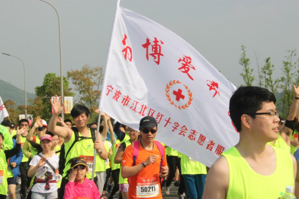 4月17日,在宁波市江北区举办的宁波市山地国际马拉松比赛中,一群身着“人道博爱奉献”字样背心、打着“为博爱奔跑”旗帜的队伍格外引人注目,这是该区红十字会为关爱生命组成的志愿者跑团。他们不仅通过奔跑传播人道情怀,也通过奔跑让生命接力。 已举办两届的宁波市山地马拉松赛是华东地区规格最盛大的越野跑赛事,每届都吸引大批国外和国内的跑友参赛。为传播人道理念,关爱生命健康,江北区红十字会利用这次难得的机会,成立组建了“为博爱奔跑”关爱生命志愿者跑团。这个团队有17人组成,都是干细胞、遗体、器官捐献的登记者。其中有“血样入库最早、待捐时间最长、捐献年龄最大、采集数量较多的”造血干细胞捐献者彭海平担任队长。他们打出了“为博爱奔跑,让生命接力”的旗帜,一早来到出发地,传播干细胞捐献、遗体器官捐献知识,发放有关宣传资料,还用自己的亲身体会现身说法,招募志愿者。当天,在他们的感召下,有8人成为干细胞捐献志愿者,2人成为器官捐献志愿者。 为保障这次马拉松赛事,区红十字会还承担了对参赛运动员的应急救护任务,在赛前组织360名宁波大学进行救护员培训,进行心肺复苏、止血、包扎、固定、搬运和常见意外伤害处理等知识的学习训练。比赛当天,动员所有培训过的救护员在沿途设置了41个救护站,在第一时间对腿部抽筋、肌肉损伤及脚部扭伤的30多名参赛人员实施救护,为参赛选手的生命安全和比赛的顺利进行真正起到了保驾护航的作用。