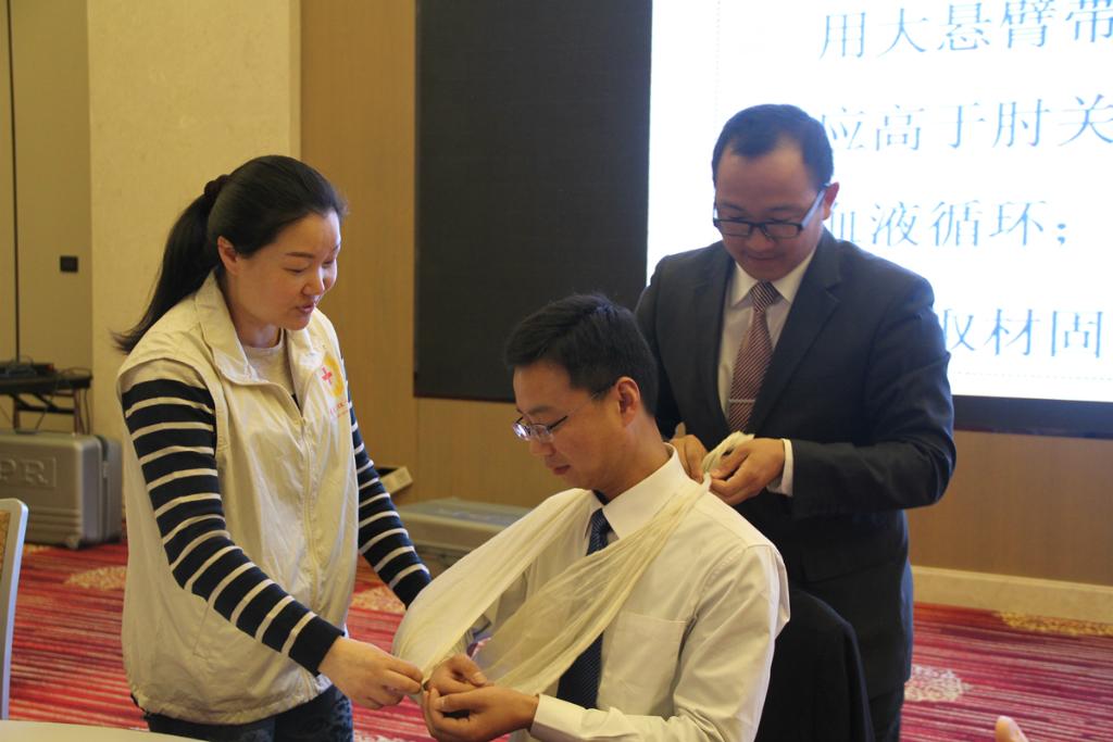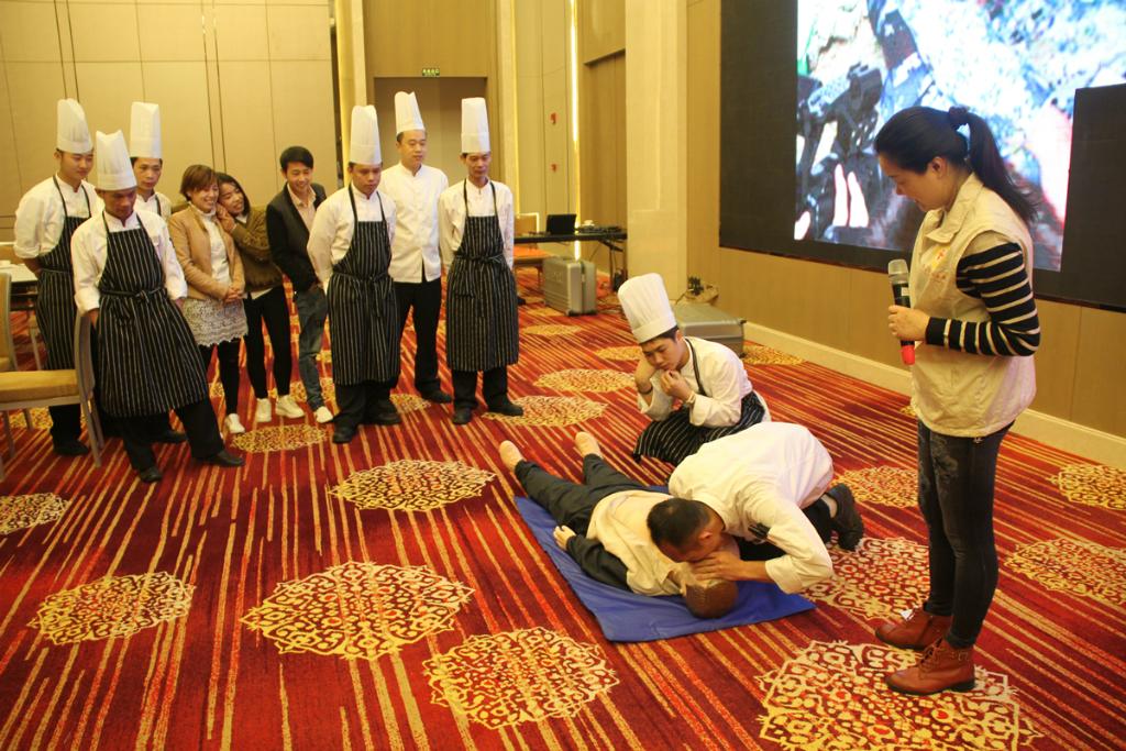 近日,台州市黄岩区红十字会在台州市旗隆万豪酒店开展应急救护培训,不断提高企业职工安全意识和应急救护知识技能。厨师、安保、前台、行政等四十余名酒店职工参加培训。