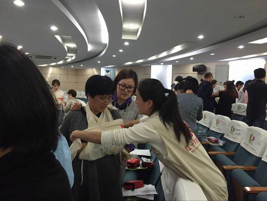 4月22日,江干区红十字会开展的以“学急救、保平安、服务G20”为主题的“百场万人红十字应急救护培训”走进采荷一小钱江苑小区,以“送教上门”的形式为采荷一小、夏衍小学的97名教师送上红十字现场救护员专场培训。