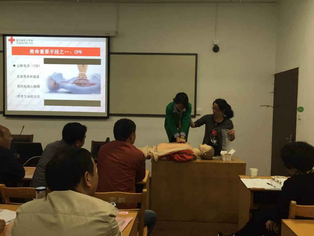 4月25日下午,新昌县红十字会走进了新昌县乡村旅游提升发展培训班,为来自全县各乡镇的43名乡村旅游从业人员开展了一期理论与实践相结合的红十字应急救护培训。