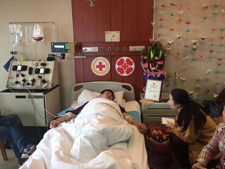 3月25日入住省中医院,连续打了4天的动员剂后,3月29日下午,历经4个小时,李海荣终于完成了他人生中的一项重大“使命”——造血干细胞的血液离析采集。一袋从他体内产出的装有250ml容量的造血干细胞悬浊液,“飞”往山东济南,为一位白血病患者送去生的希望。至此,李海荣光荣地成为了富阳第9位、第10例(汪霖捐献了两次)造血干细胞捐献者,同时也将是浙江省第268位造血干细胞捐献者。