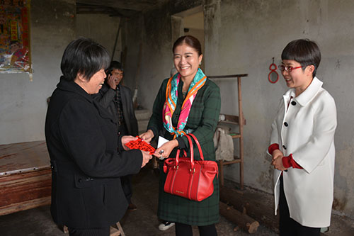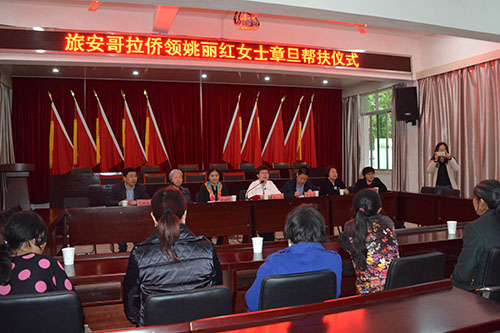 继今年春节期间,县妇女爱心俱乐部成员旅安哥拉侨领姚丽红女士捐助爱心款3万元后,3月29日下午,又捐款1万元并亲赴章旦乡慰问贫困妇女。县妇女爱心俱乐部会长陈剑容和县统战部、县红十字会、章旦乡政府相关人员参加慰问活动。