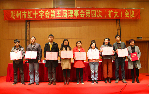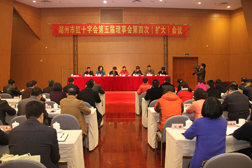 3月18日,湖州市红十字会召开第五届理事会第四次(扩大)会议。会议报告了2015年工作情况和2016年工作部署,报告并审议了2015年度捐赠款物接受和使用情况,更换部分理事,表彰了湖州市红十字会优秀应急救护培训讲师和优秀志愿者。市红十字会理事、社会监督委员会委员、各县(区)常务(专职)副会长、秘书长等共80余人参加会议。副市长、市红十字会会长闵云参加会议并作讲话。