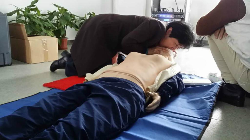 培训师为员工们讲解了应急救护与医疗救护的区别,心肺复苏术,中暑、晕厥等常见疾病的现场救护,还教会了员工正确拨打120急救电话。员工们饶有兴致地听讲,纷纷在模拟人身上认真操作体验心肺复苏,有位小伙子感叹到:“听完课感觉自己学会了,但一上场还是会懵,这项技术的实践性真是太强了,一定要好好练练!”