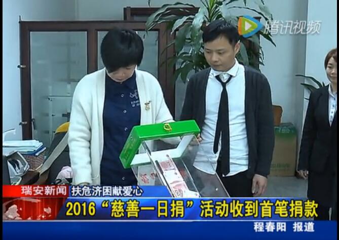 3月7日下午,瑞安市莱系网络信息技术有限公司负责人陈祥金和几名员工带着1 万元爱心款来到市红十字会。这是市红十字会今年收到的第一笔“慈善一日捐”爱心款。“上周,我在员工微信群里看到一条消息说,汀田街道联胜村有位女孩叫黄韵瑜患了恶性淋巴瘤,治疗费用颇大。”陈祥金说。得知消息后,陈祥金和姐姐陈祥莲马上到小女孩的家中了解情况,随后便通过微信公众平台向社会筹集善款,同时发动公司员工参与“慈善一日捐”行动。一周下来,共筹集善款一万元。