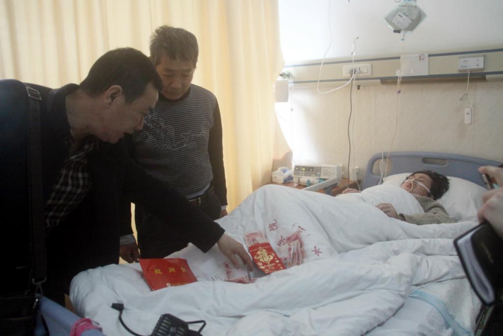 3月9日上午,舟山市红十字会工作人员和舟山广电总台《汪大姐来了栏目》记者来到舟山市妇幼保健医院,给因煤气中毒而住院治疗的乐广州一家送去慰问和爱心。