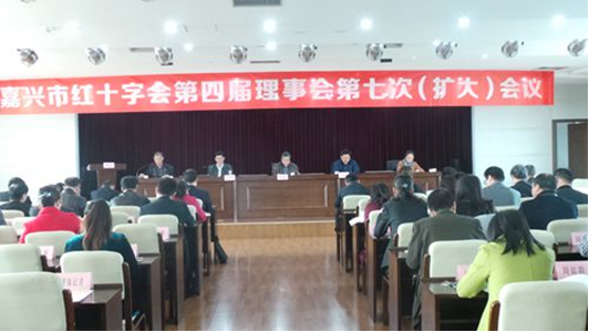 3月4日下午,嘉兴市红十字会第四届理事会第七次(扩大)会议顺利召开。会议总结了全市红十字会2015年工作,研究部署了2016年工作;报告了2015年度捐赠款物接受和使用情况;更换、增补了部分理事、副会长;会议表彰了各县(市、区)红十字会重点工作考评先进和红十字博爱功勋奖先进集体和先进个人,还与朝聚眼科医院集团合作“朝聚之光 点燃希望”项目进行签约;副市长、市红十字会会长柴永强出席会议并讲话,市红十字会党组书记、常务副会长吴月荣作年度工作报告,市红十字会党组成员、副会长傅琦红作捐赠款物接受和使用情况报告,市政府副秘书长、市红十字会副会长王伟荣主持会议。市红十字会第四届理事会理事,各县(市、区)红十字会专职会长、常务(专职)副会长、秘书长,市红十字会学校工作委员会委员等100多人参加会议。