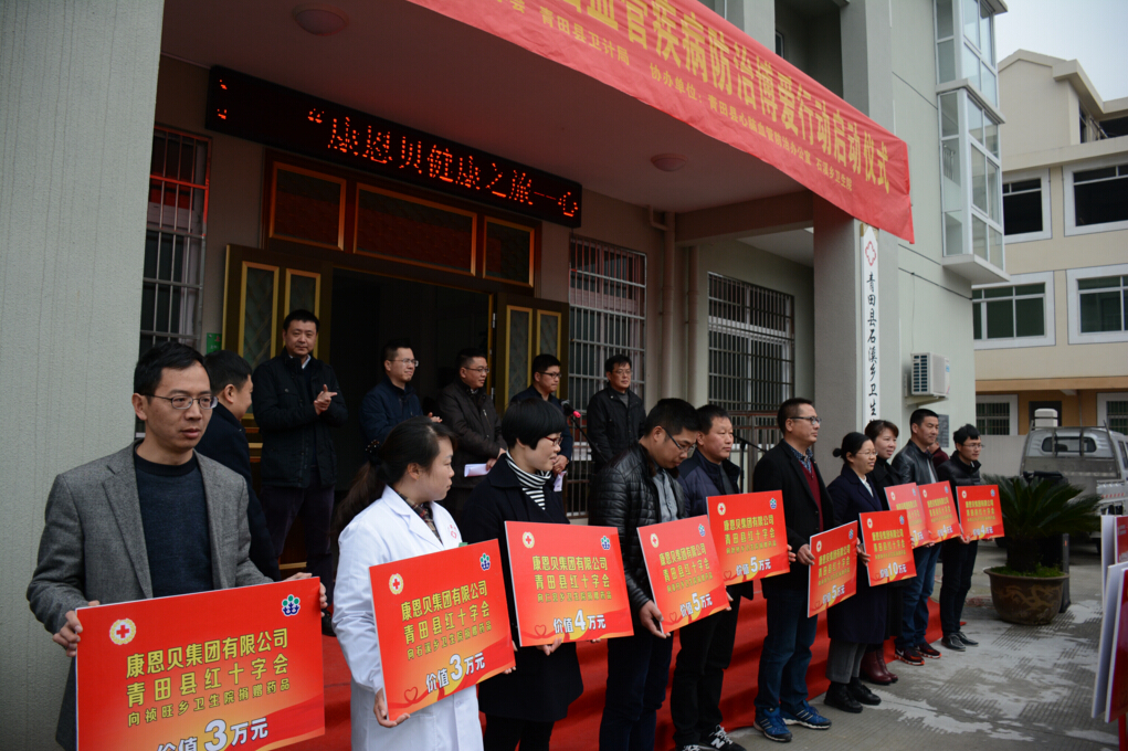 2月25日上午,青田县在石溪乡卫生院举行“康恩贝健康之旅——心脑血管疾病防治博爱行动”启动仪式和专家咨询义诊活动。来自项目实施地乡镇(街道)分管领导和定点医疗机构负责人、心脑血管疾病防治专家和医务人员、以及心脑血管疾病患者受助代表和周边群众100余人参加了启动仪式。副县长张向东参加了启动仪式并作讲话。
