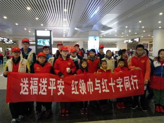 不知不觉中,红领巾红十字志愿者们将2000份“福袋”送到了杭州火车东站的各个角落。虽然室外气温接近冰点,但同学们的热情丝毫没有收到影响,他们用自己的实际行动践行红十字事业“人道、博爱、奉献”的宗旨,也向广大返乡旅客送去新春祝福和平安。