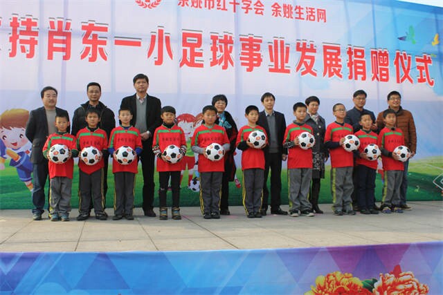 捐赠仪式上,余姚生活网通过市红十字会向该校足球队赠送了球服、比赛行旅包、球场节能灯具、校园足球发展基金等价值72780元的物品。市红十字会向学校捐赠了800余个足球,同时,还为同学们带来了铅笔、笔记本、数学套袋等文具用品,总价值47220元。