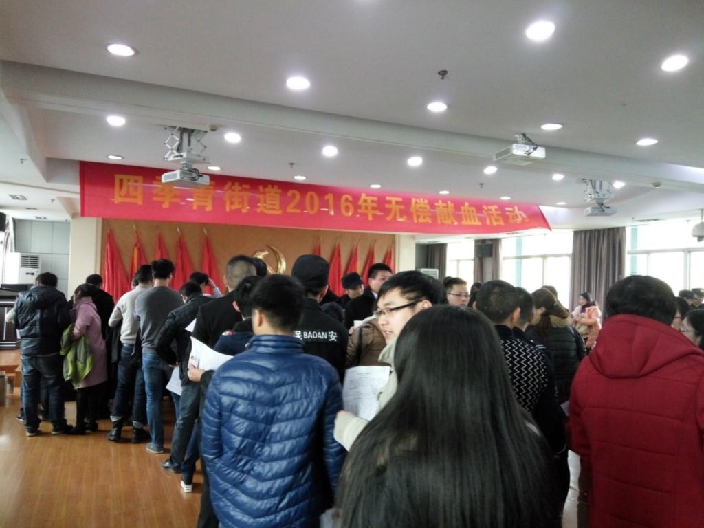 12月15日上午,江干区四季青街道红十字会组织开展2016年无偿献血活动,街道、社区干部,辖区企业职工和广大居民群众积极参加。 本次活动持续了近五个小时,填表登记、检查、化验、抽血,整个活动现场平稳有序。工作人员和志愿者热情耐心地为前来献血的人员做好服务,并解答在献血过程中遇到的各种问题。据统计参与本次献血活动的人数296人,献血量6万6千多毫升,完成造血干细胞捐献入库人数21人,超额完成区下达2016年计划数,充分体现了“人道、博爱、奉献”的红十字精神。