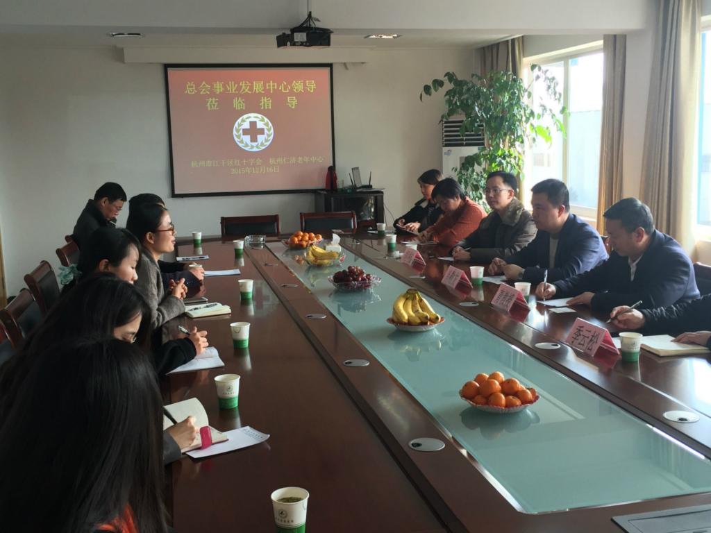 12月16日上午,中国红十字会总会事业发展中心老龄事业部肖敬友副部长、中央党校科学社会主义教研部青连斌教授专家一行9人来到位于江干区的杭州仁济老年中心,开展失能老人养老服务专题调研。浙江省红十字会赈济救护处季云松处长,江干区红十字会党组成员、副会长胡杭,街道红十字会负责人、中心负责人陪同调研。