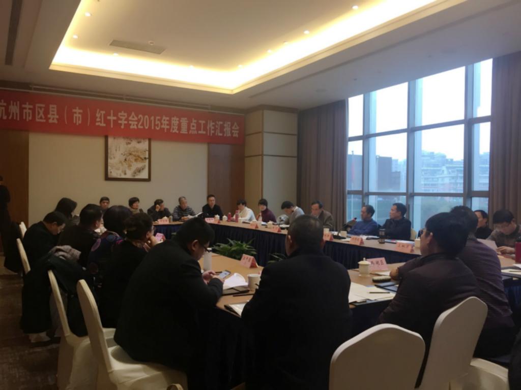 12月10日-11日,杭州市红十字会召开2015年度区县(市)红十字会重点工作汇报会。市红十字会常务副会长周志明讲话,副会长何校生主持,秘书长郦汀及13个区县(市)红十字会负责人参加会议。