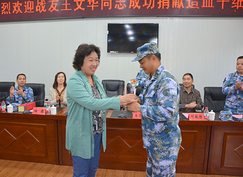 在10日的欢迎会上,市红十字会会长冯淑仙把爱心天使杯送到王文华手上,称赞他是真正的爱心天使,以自己的满腔热血豪情,有力践行了社会主义核心价值观,展示了军人的高尚情怀,诠释了“人道、博爱、奉献”的红十字精神。