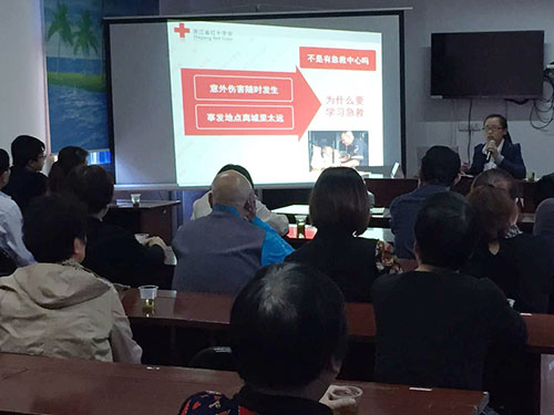 活动中,红十字会讲师从家庭生活的实际需要出发,将日常常见疾病的护理与安全急救知识结合在一起,以情景形式,分别模拟了跌倒后处理、足部扭伤后处理、创伤救护技术以及心肺复兴等内容,并讲解了高血压、气道梗阻等日常疾病与意外伤害的急救与护理知识。