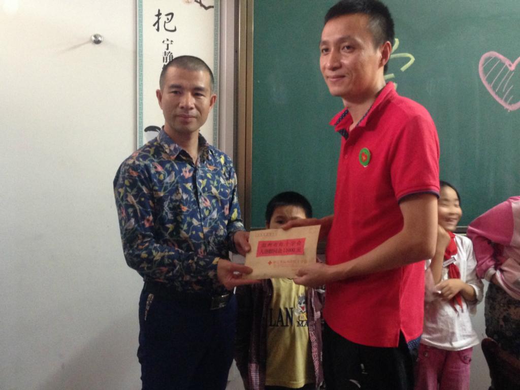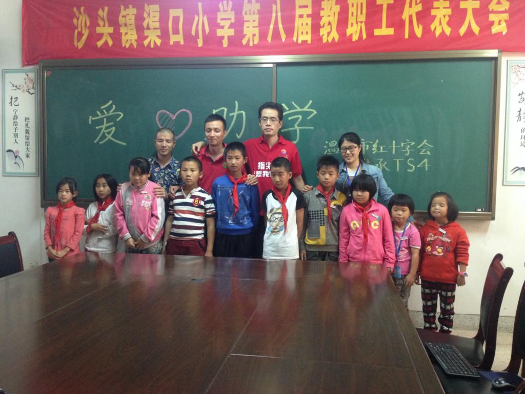 2015年10月23日下午,永嘉县红十字会工作人员陪同市天缘传承TS4、指尖汇爱心公益组织一同前往沙头镇渠口小学进行爱心助学活动,向该校11名小学生提供资金帮助。