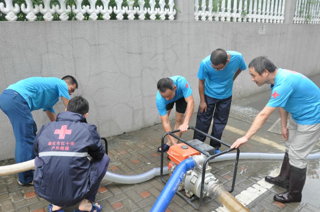 昨天午夜电闪雷鸣,奉化市又突降暴雨,大量降雨致使各地积水严重,积水又开始围困阳光社区,特别是地下车库,基本淹没,不见踪影。早上5点左右,天一蒙蒙亮,市红十字户外救援队又接到阳光社区来电,请求抢险排水,队员们又马上赶到社区开始抢险排水作业,在队员们的共同努力下,积水情况有所缓解。今天上午,市红十字会工作人员赶去察看台风受灾情况时,队员们还坚守在抢险第一线,预计下午可以完成排水作业。