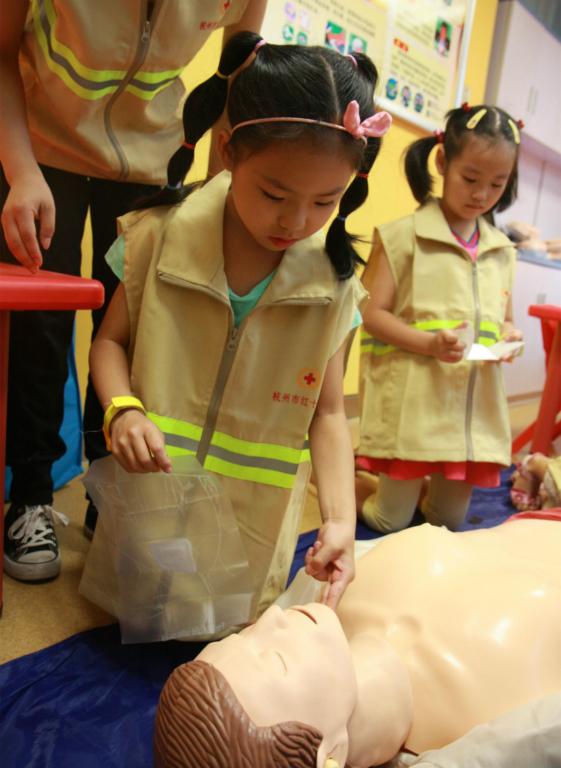 9月12日世界急救日,杭州市首个青少年红十字救护体验馆在“Do都城”少儿社会体验馆内开幕。