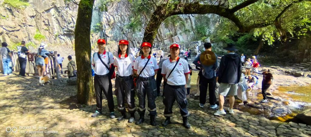 整个国庆假期,救援队员们放弃与家人团聚的时光,风雨无阻坚守岗位。他们以专业的素养、温暖的行动,生动诠释了“人道、博爱、奉献”的红十字精神,将“安全”二字深深刻入景区的每一个角落,有力保障了五泄风景区假期的平稳、有序、欢乐运行。