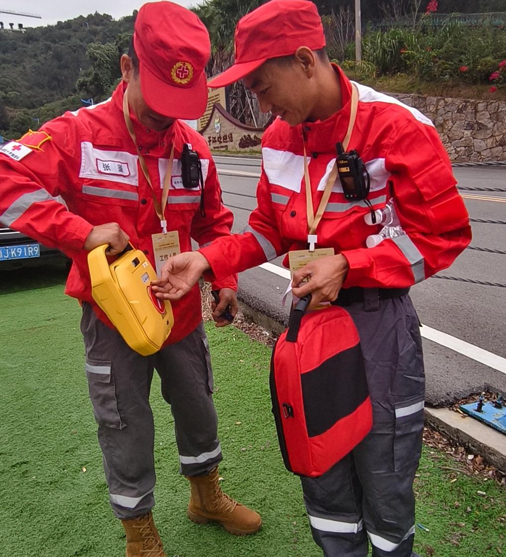 宣传摊位是温情的传递站,赛道上的应急保障则是坚实的生命防线。为保障参赛人员安全,市红十字会全力配合组委会安保要求,选派9名经验丰富的红十字应急救援队队员全程护航。根据赛道特点,按照“1公里+1名应急救援队员+1台AED”的配置,在关键点位定岗值守,实现赛事全程安全覆盖。从清晨的赛前准备到赛事结束的收尾工作,队员们始终保持高度警惕,密切关注每一位跑者的状态,随时准备应对突发状况,他们专业的素养和坚守的身影,让跑者们倍感安心。“看到赛道旁的红十字身影,内心安全感十足!”一名10公里项目完赛选手说道。