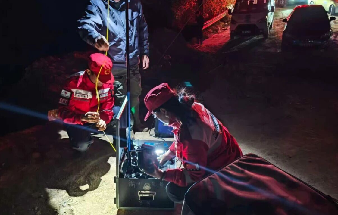 一场悬崖深处的生命接力就此展开。找到老人的消息迅速传递,市消防队的队员第一时间携带绳索装备赶到现场支援。老人受伤被困崖底已超过30小时,生命岌岌可危,营救工作争分夺秒。先锋救援队提前升起两架系留无人机进行照明。