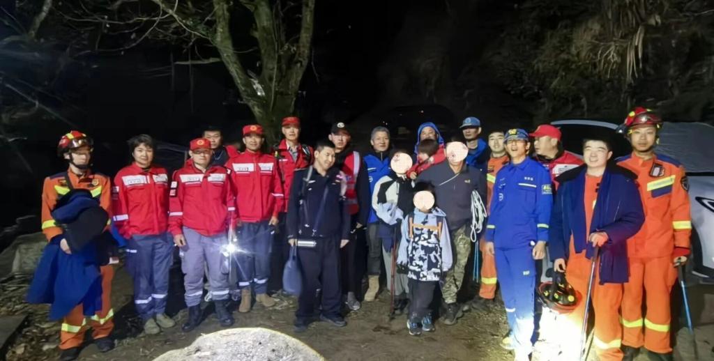 历经四个多小时的不懈搜寻,当晚20时40分,救援人员终于在一处峡谷中发现被困的一家四口,四人身体状况良好,只是因迷路有些惊慌。救援队员们虽已汗流浃背,疲惫的脸上却难掩找到被困人员的欣喜。