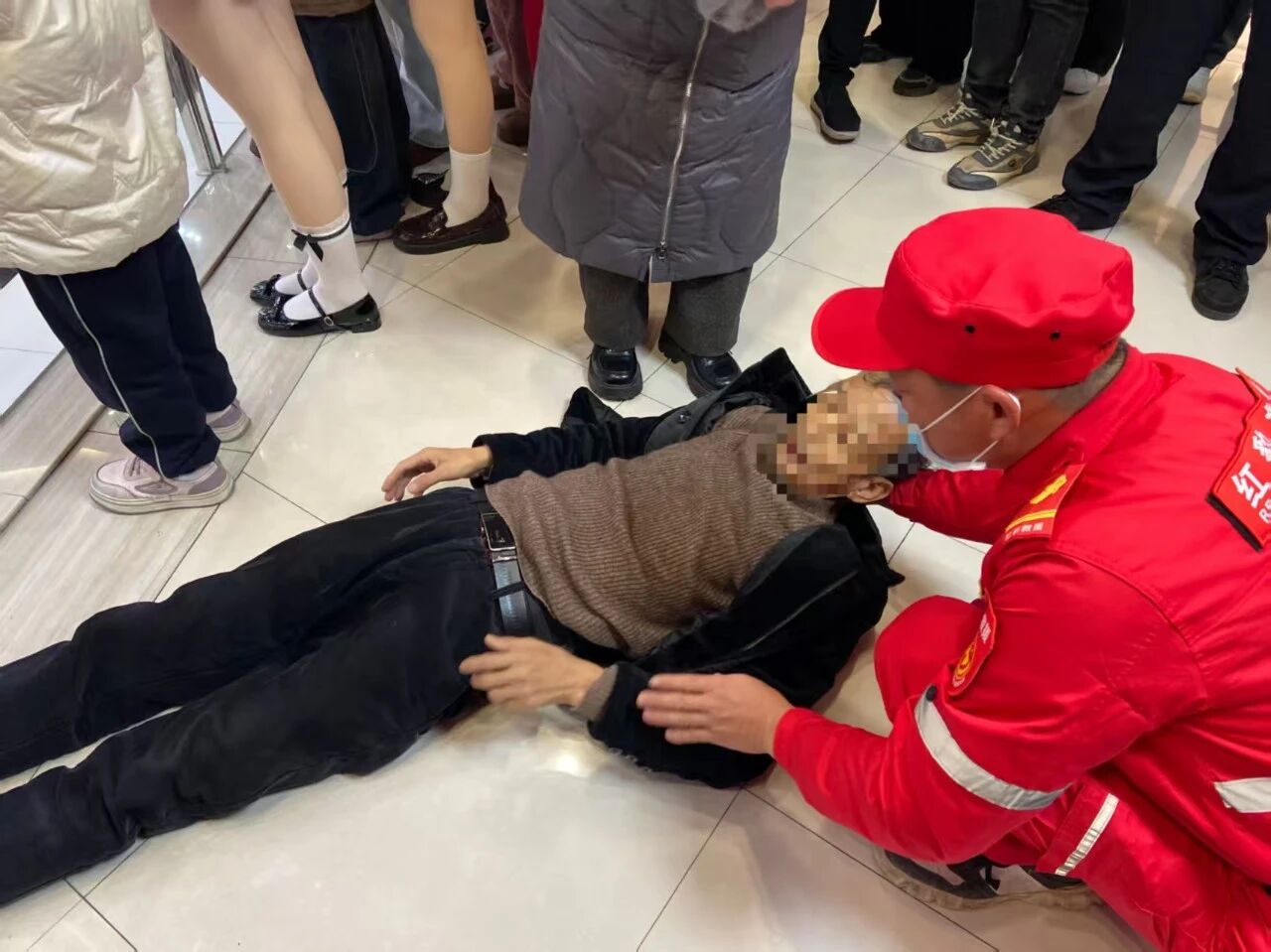 当晚20时许,银泰城二楼正值人流高峰,接连发生两起突发健康事件。一名老年市民突然晕厥,正在附近巡查的队员第一时间上前处置,迅速疏散围观群众、保持空气流通,并实施基础救护。待老人意识逐渐恢复后,队员小心将其护送至场外通风区域,并协助联系家属安全接回。紧接着,又有一名女士因体力不支倒地,队员迅速判断为气血亏虚叠加现场供氧不足所致,随后在专业指导下协助其同伴进行照护。该女士很快恢复平稳状态,对队员的专业与细致连连致谢。