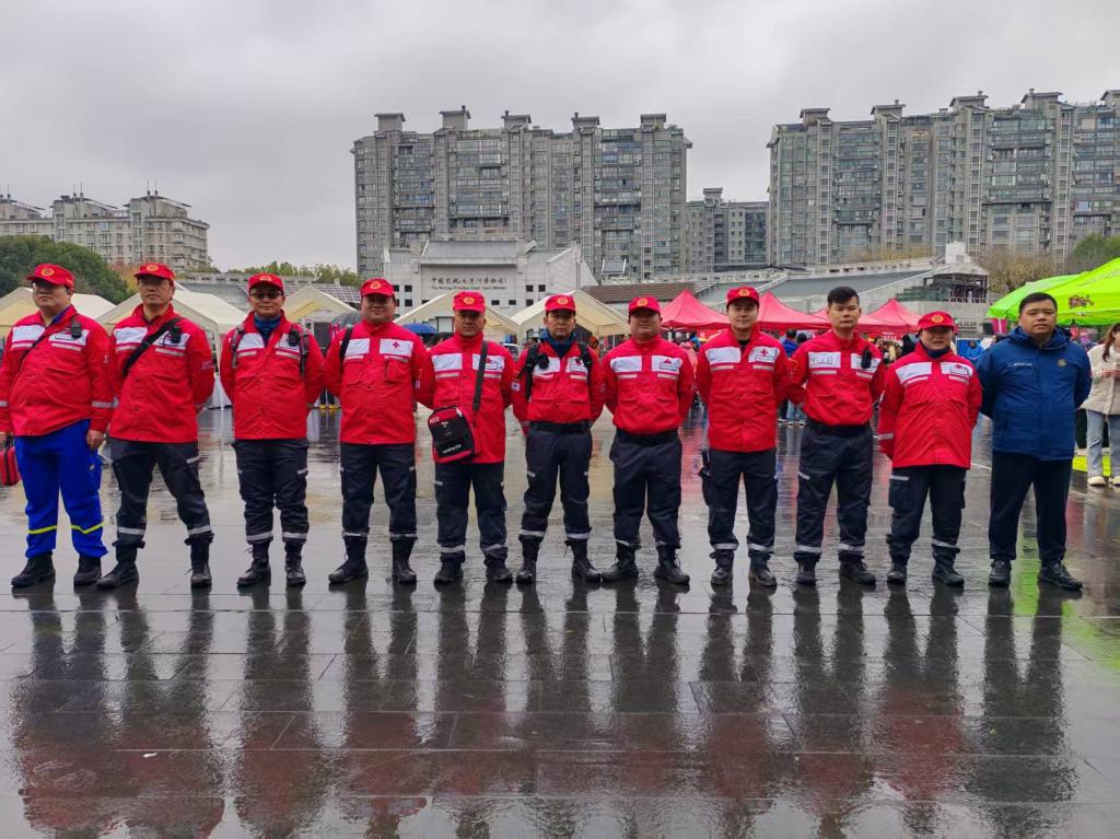 拱墅区红十字杭蓝救援队化身“安全卫士”,13名队员配备3台AED与8个急救包,为活动提供秩序维护、应急救援等保障服务,用专业守护每一步前行的“好运”。