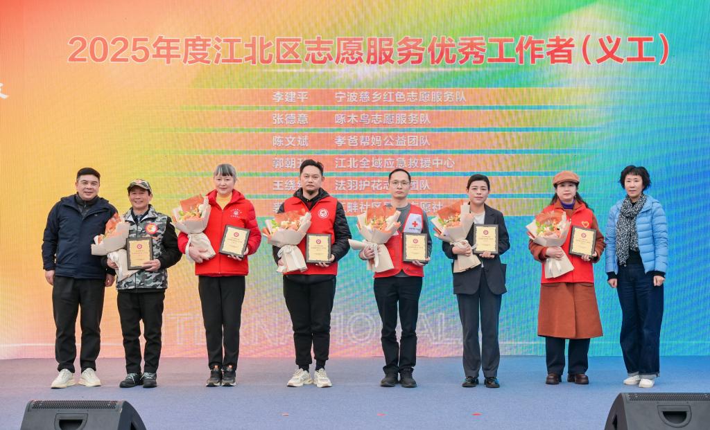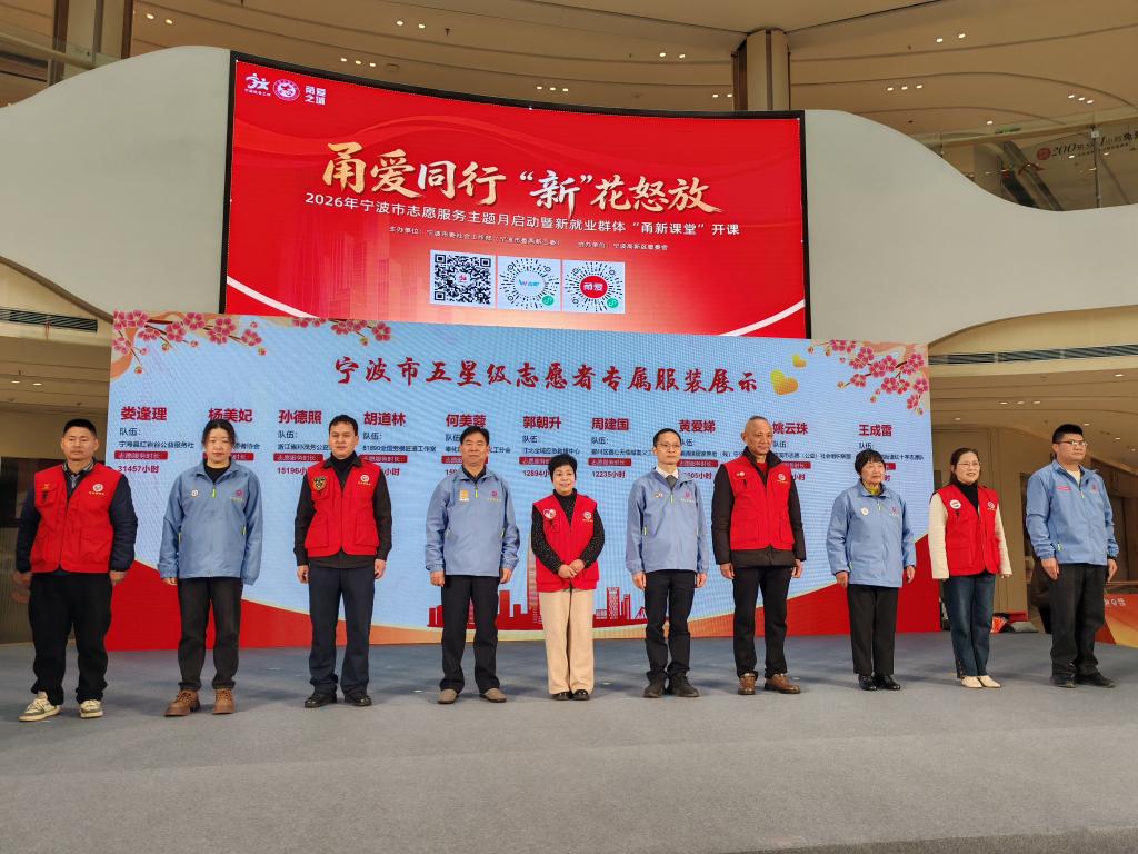 在2026年宁波市志愿服务主题月启动仪式上,应急救援中心作为应急救援志愿力量受邀亮相,参与志愿者专属服装展示环节,以昂扬姿态展现了江北区红十字志愿者的专业素养与责任担当,传递了“召之能来、来之能战、战之能胜”的坚定信念。其中,队长郭朝升荣获2025年度江北区志愿服务优秀工作者和宁波市“五星万分”志愿者等称号。