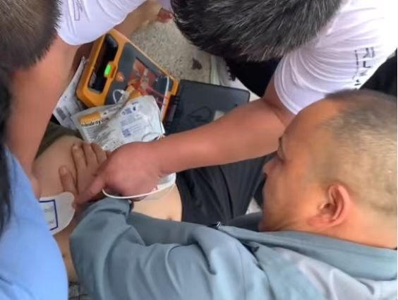 11月13日清晨,像往常一样到龙川公园锻炼的杨建波经历了惊心动魄的一刻。有一男子昏倒在地,已无意识,现场很多人围观,AED(自动体外除颤器)也已拿到了现场。杨建波见状,赶忙跑上前去帮忙,在判断患者无意识、无呼吸后,确定患者发生了心脏骤停,他立即着手对患者进行胸外按压,并沉稳快速地指导身边的人打开AED机,按图示贴好电极片,并在AED心律分析的过程中,非常专业地提醒周围群众离开,不要触碰患者。