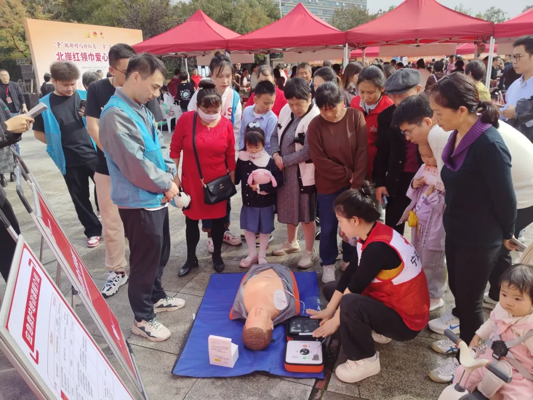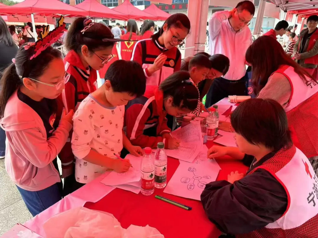 活动现场,江北区红十字“三救三献”和心理健康志愿服务队还为学生和家长们带来了应急救护技能体验和心理游戏互动等。