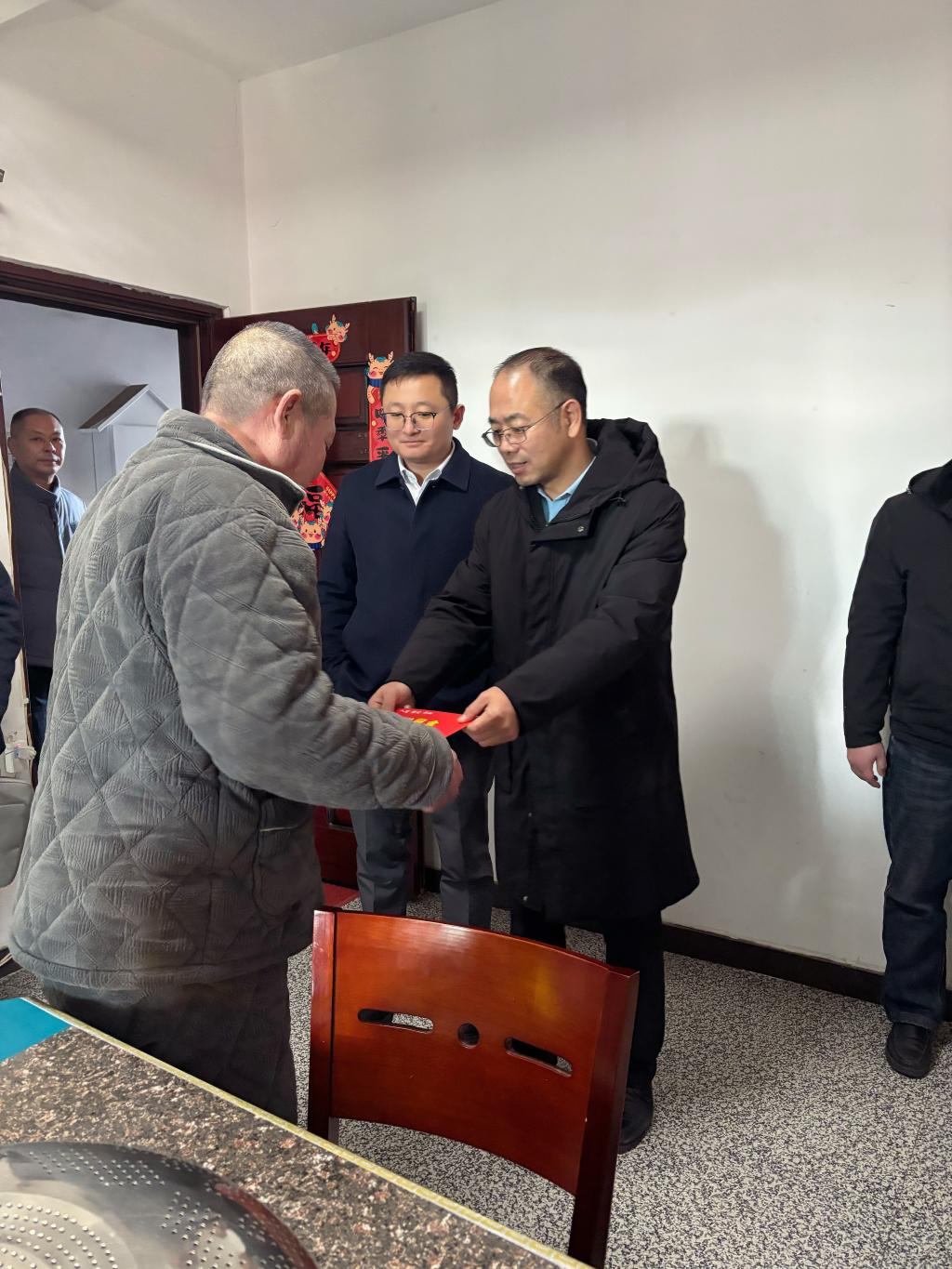 1月17日上午,衢州市红十字会常务副会长蓝芝苇,龙游县副县长舒建明等相关会人员在龙洲街道开展“博爱送万家”节前走访慰问活动。街道党工委书记施涛、人大工委副主任毛洪飞陪同。在走访慰问中,深入了解困难需要给予人道救助的家庭,每慰问一户,都同他们亲切交谈,详细了解他们的生活情况,鼓励他们积极面对困难,不断改善生活境况。同时送上慰问金、米、油及生活用品等和新春的祝福。切实让困难群众感受到党和政府的温暖和关怀,让困难家庭过上温暖、祥和的春节。